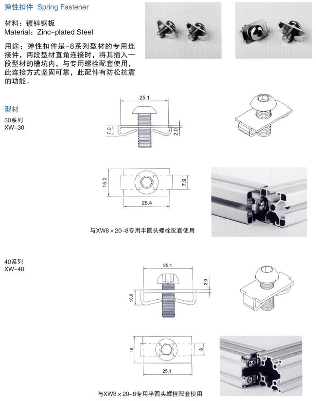 角槽連接件  內(nèi)置連接件  專用半圓頭螺栓  彈性螺母塊